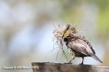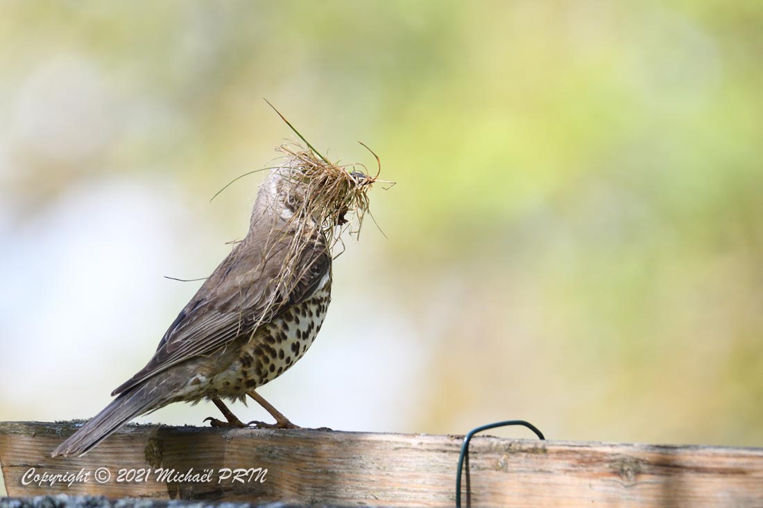 Je n'ai donc pas hésité à me montrer pendant le temps de la construction en prenant des photos pour qu'elle s'habitue à moi. Je ne suis pas resté longtemps à chaque fois, mais je suis venu régulièrement sans qu'elle ne se soucie de moi, continuant son nid comme si de rien n'était. J'en ai profité pour installer un escabeau un peu plus loin en prévision des prochaines prises de vue pour ne pas la perturber une fois installée.